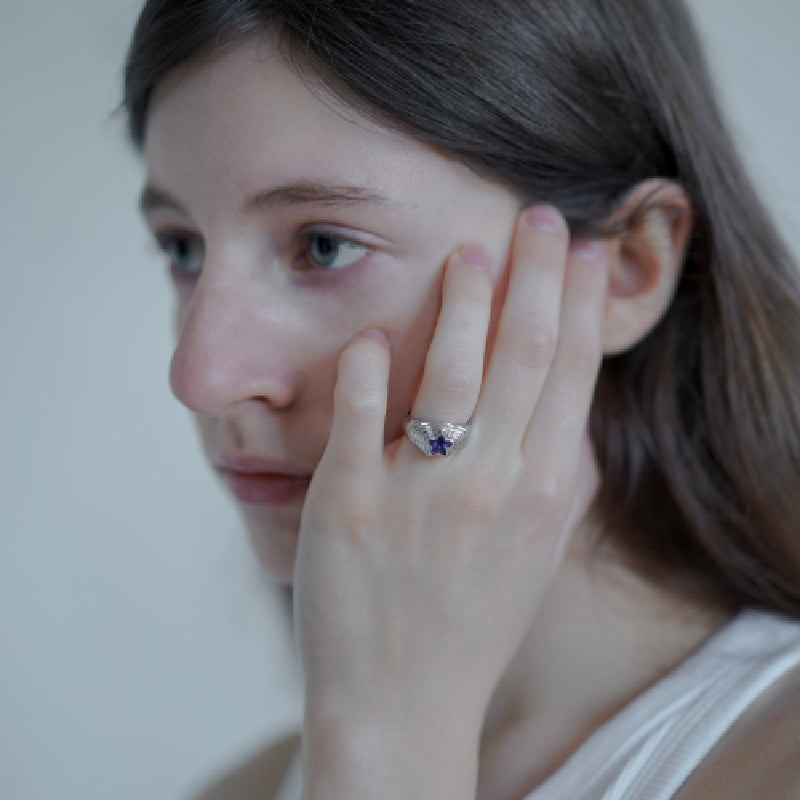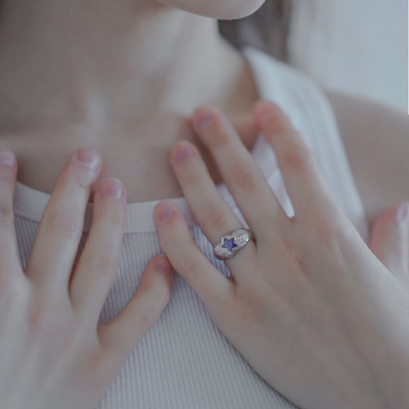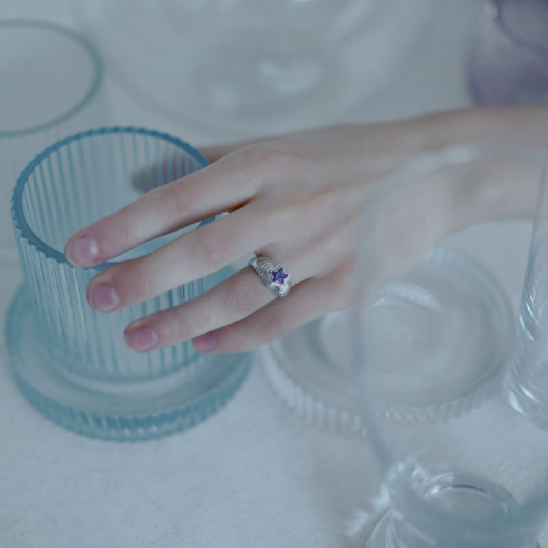 Indigo Star Wave Ring (3D Hydraulic Texture)